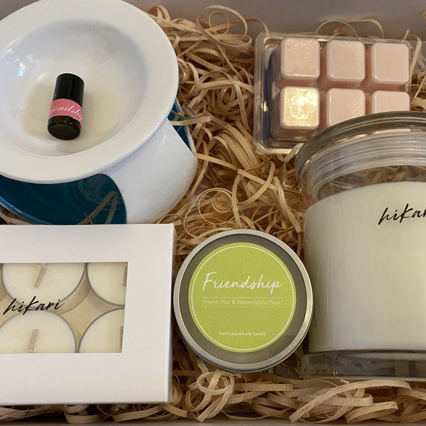 Candle gift box with quality soy candles in Friendship blend fragrance. Treat a friend to our friendship candle gift box today.